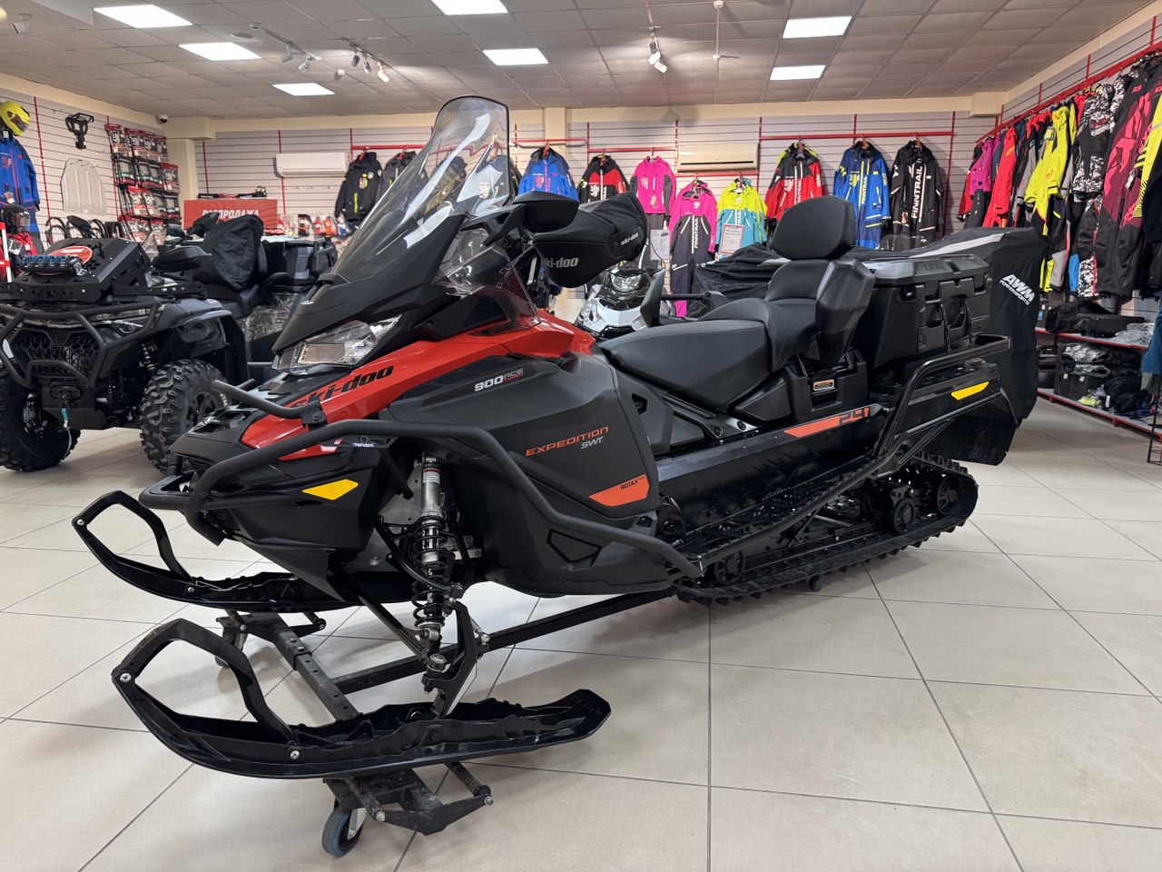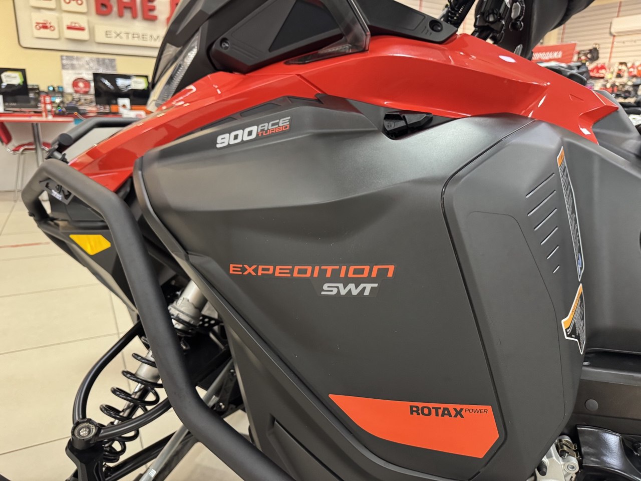 Снегоход BRP Ski-Doo Expedition SWT 900 ACE Turbo — мощный и комфортный утилитарно-туристический снегоход , рассчитанный на эксплуатацию в тяжёлых условиях снега и целине. Турбированный четырёхтактный двигатель Rotax 900 ACE Turbo обеспечивает уверенную тягу на низах и комфортный разгон, а широкая платформа и подвеска дают стабильность как при рабочей нагрузке, так и на прогулках.